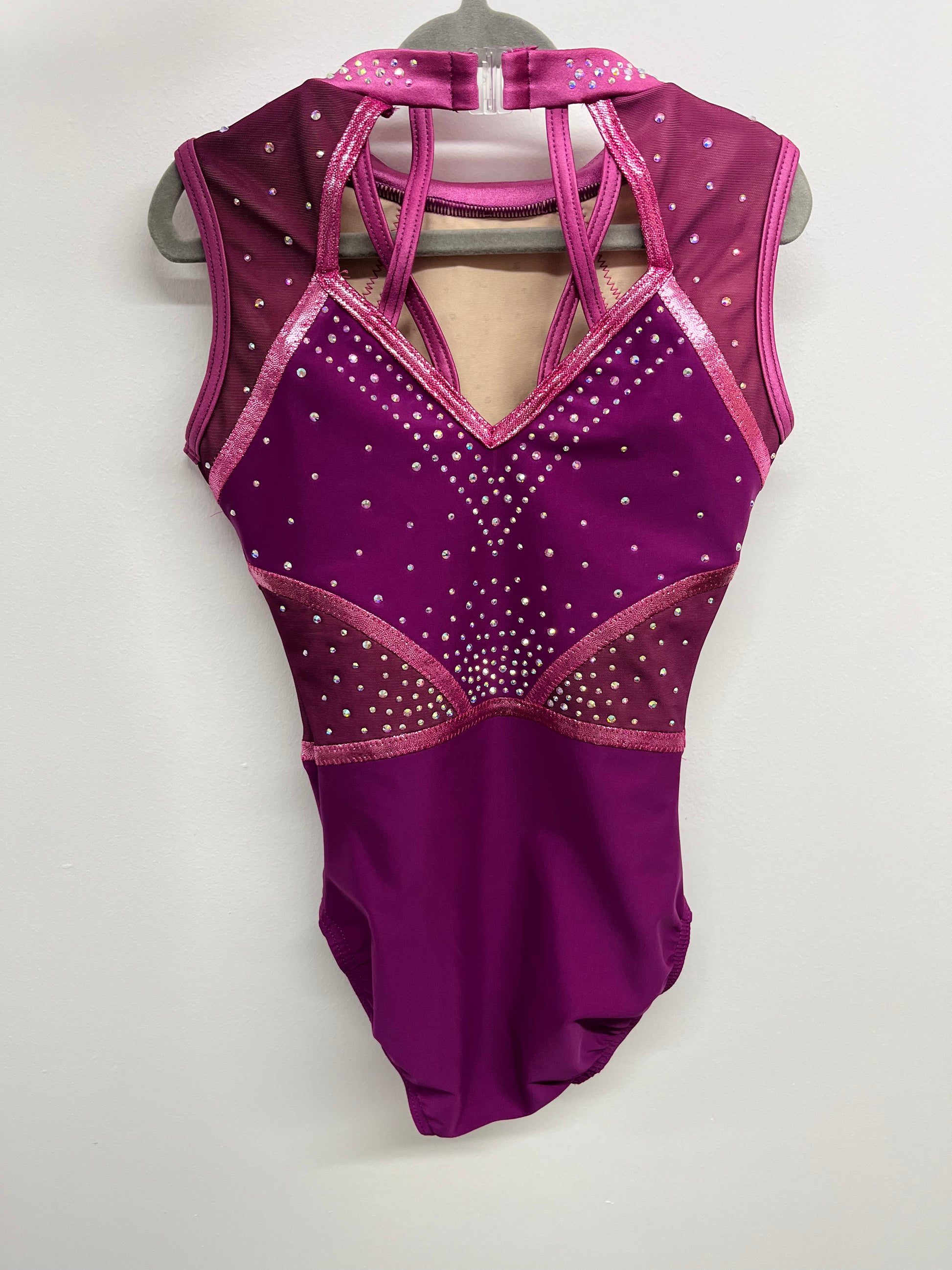 High neck leotard with AB stones. Unlined