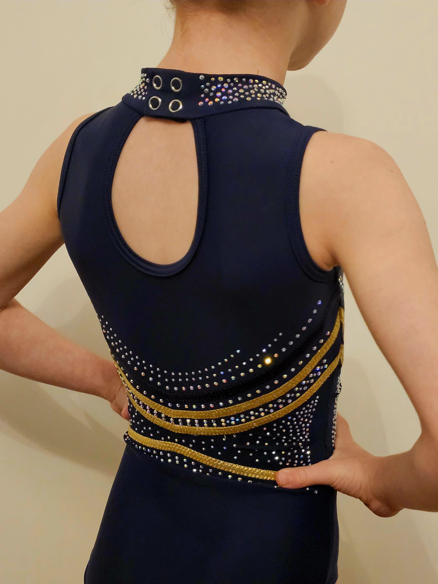 Navy lycra leotard with high neck
