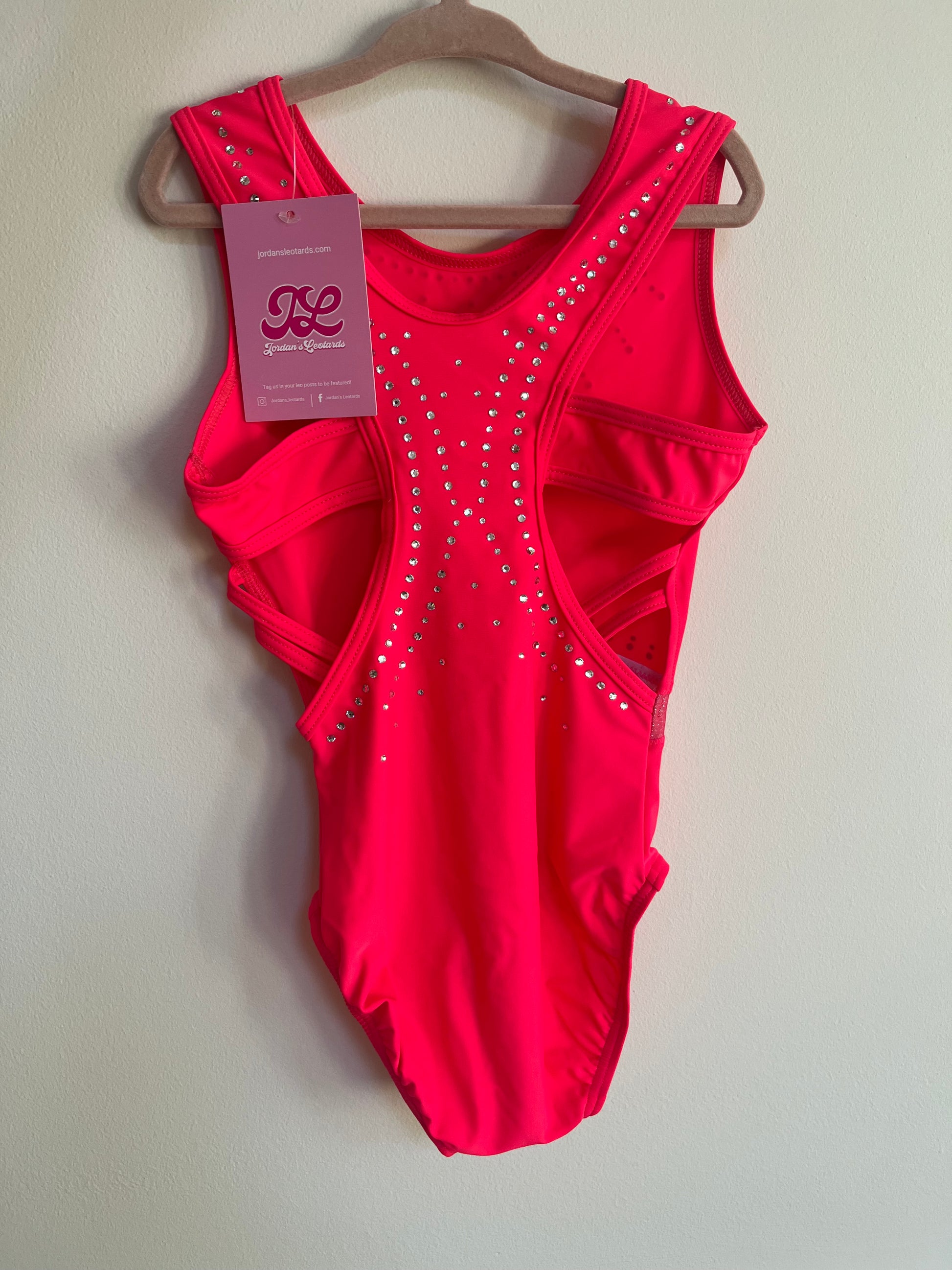 Bright coral lycra with clear stones, perfect for those hot training sessions!